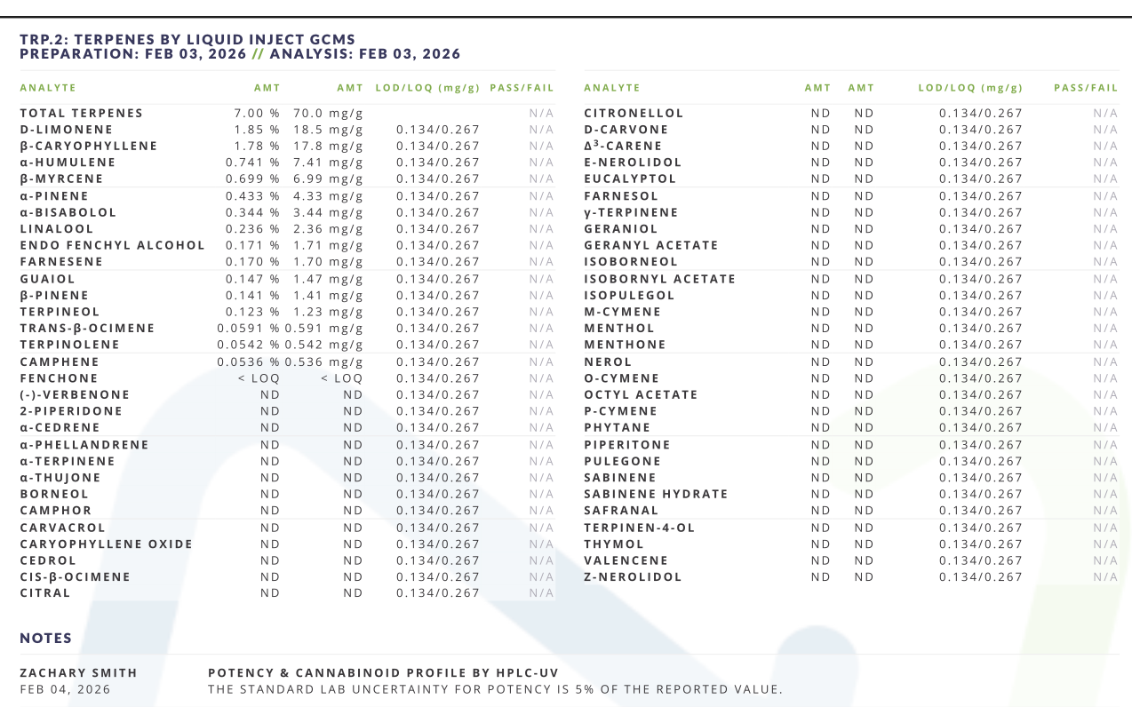 Test Results Our latest batch of food grade rosin, currently available in darts Potency test Terpene Test CBD Distillate, currently available in darts